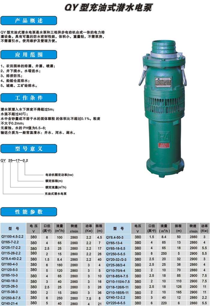 QY型充油式潜水电泵