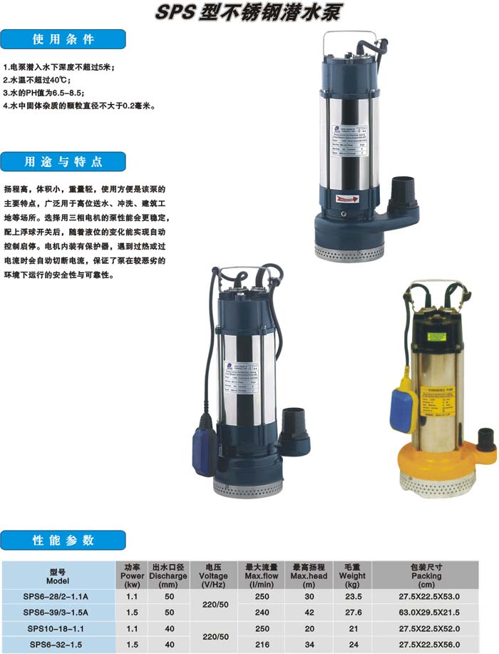 SPS型不锈钢潜水泵