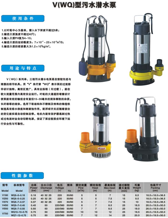 V(WQ)型污水潜水泵