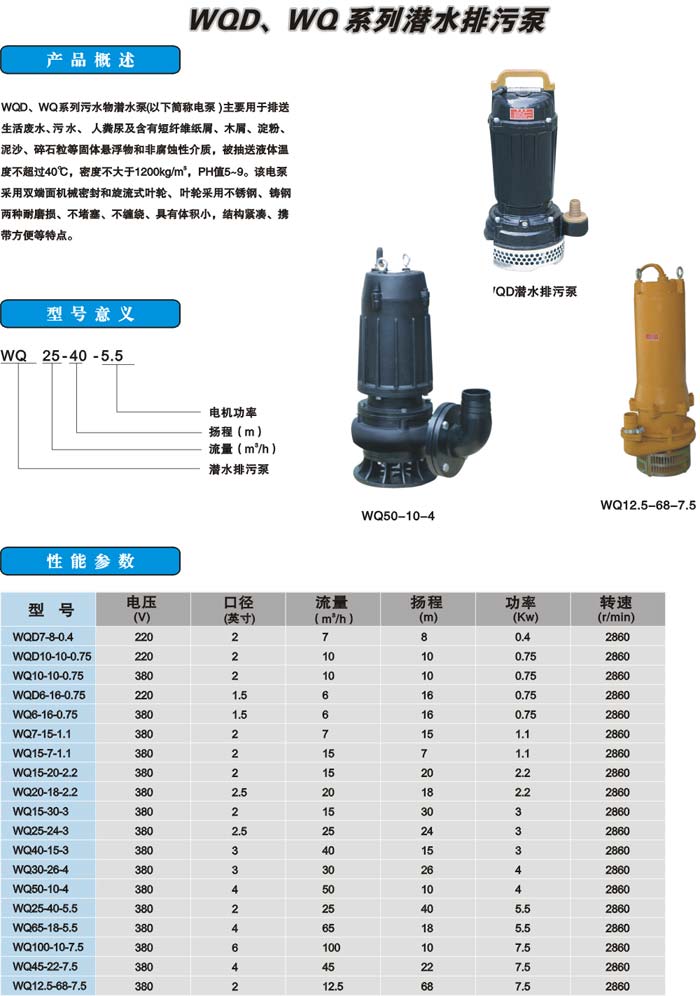 WQ(D)型污水污物潜水电泵