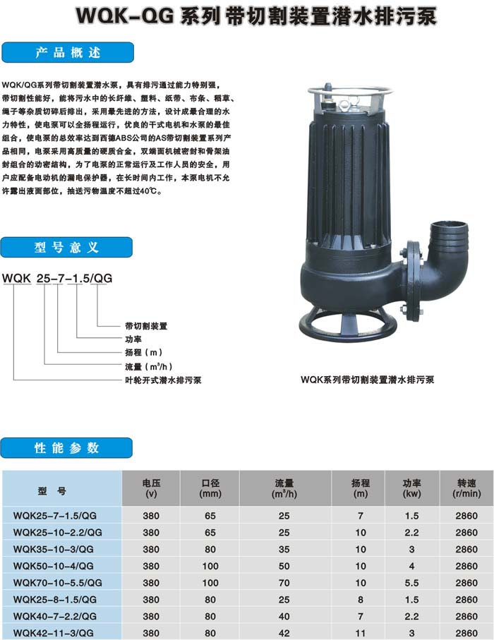 WQK-QG系列带切割装置潜水排污泵