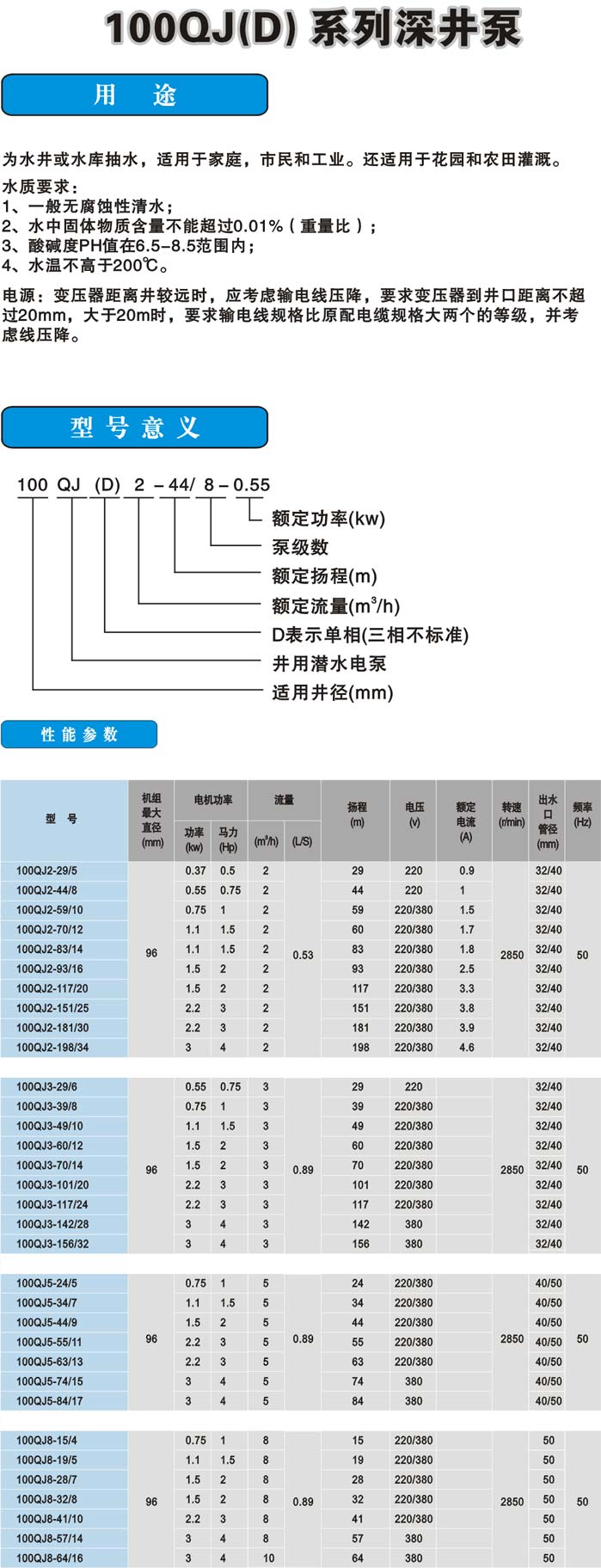100QJ(D)系列深井泵