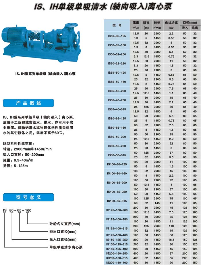IS、IH单级单吸清水(轴向吸入)离